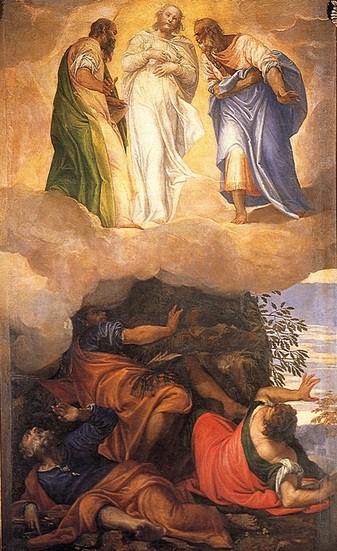 The Transfiguration – Jesus is transfigured, dazzling white, on Mount Tabor.